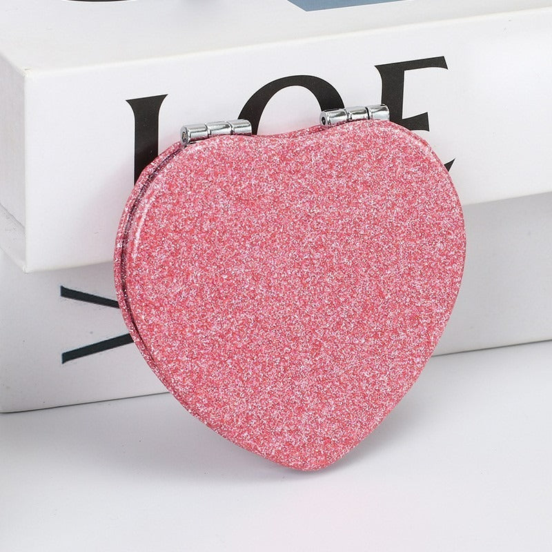 This stylish, heart-shaped compact mirror boasts a sparkling pink glitter design that's both chic and practical. Lightweight and portable, it easily fits in your purse or cosmetic bag, allowing you to quickly freshen up on the go. With its elegant appearance and functional design, this compact mirror also makes a thoughtful and charming gift for friends, daughters, or your loved ones.
